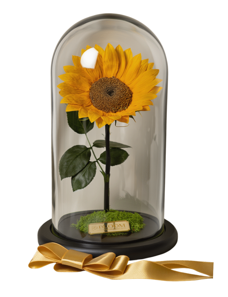 Presentamos nuestro girasol natural preservado, una joya que captura la alegría del verano y la mantiene intacta.